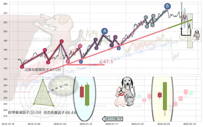➢ 2018-04-30-2019-12-09上升趋势存在反转[风险],其原上升趋势的支撑位(225.48)已破位[强阻力信号],原上升趋势角度: 47.6˚