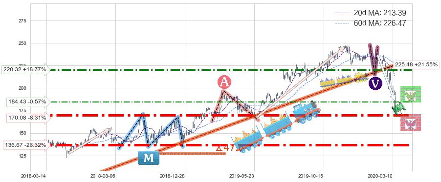 ♘ 阻力价格位220.32,可信任强度65.35%,距离最后交易2020-03-13形成的收盘价格185.50相差 +18.77%
