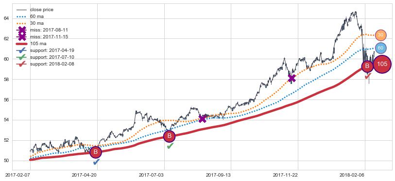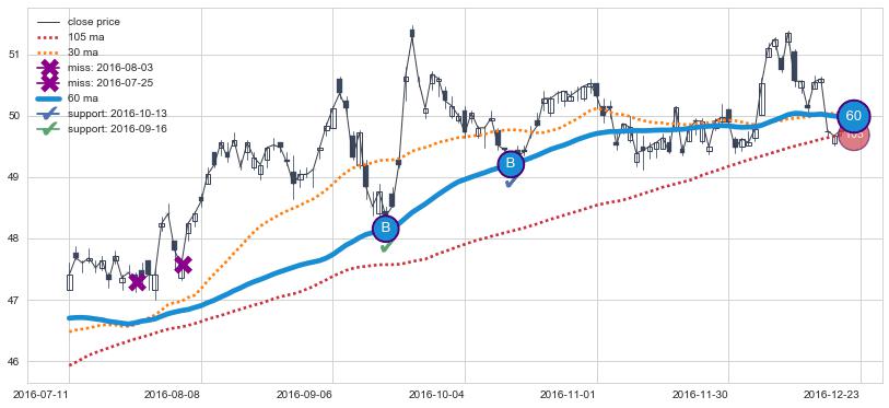 ➢ 最优均线组合共正确确认支撑阻力信号9处,正确确认率 69.23%