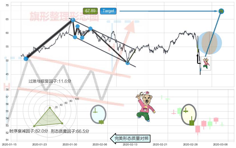 ➢ 【卖1】: 激进型 卖点→(2020-02-18: 58.09 )形成突破升⚑旗形【整理】形态