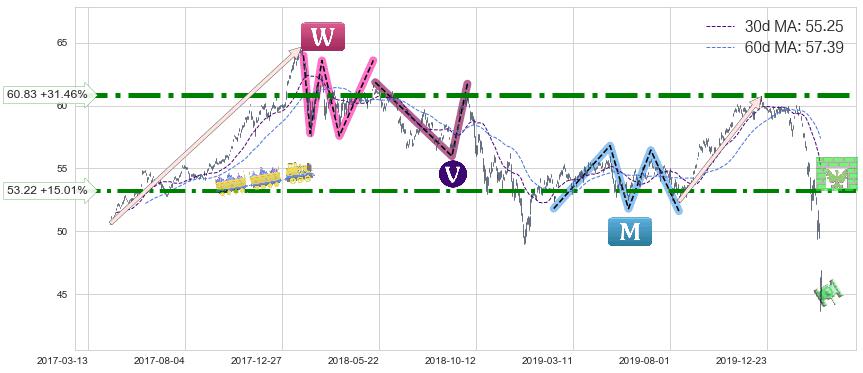 ➢ 【已达成】最小【整理】第一目标价格→(2020-03-12: 46.57 ), 后续继续【整理】下跌动力依然存在,下跌空间适中