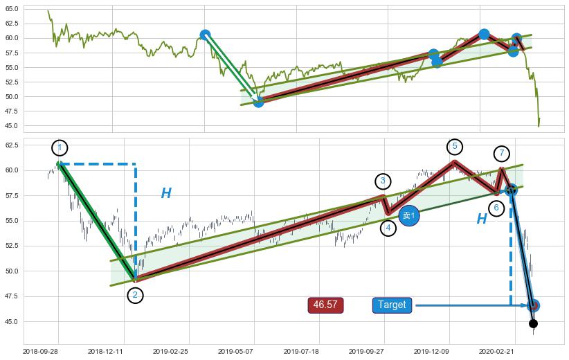 ➣ 最小中继整理涨幅→𝐇: 14.06 (𝐇旗杆的长度:旗杆起点→顶点)
