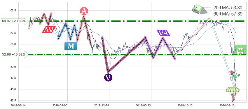 ♞ 20日均线:53.30,60日均线:57.39→ 快线<慢线