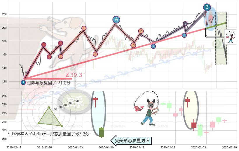 从2018-12-24至2020-01-30,共包含277个交易日,阶段股价上涨56.96%,阶段股价变动位移路程比: 1 : 6,上涨趋势角度: 39.3
