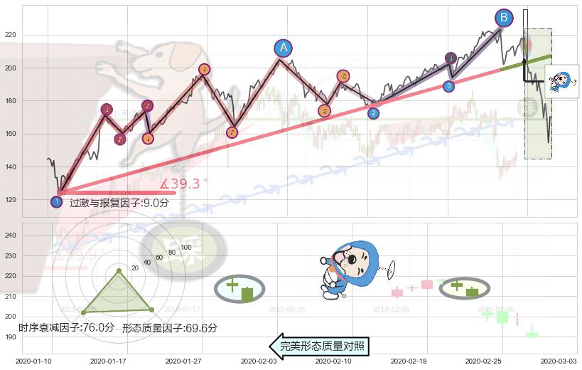 ➢ 2018-12-24-2020-01-30上升趋势存在反转[风险],其原上升趋势的支撑位(207.04)已破位[强阻力信号],原上升趋势角度: 39.3˚
