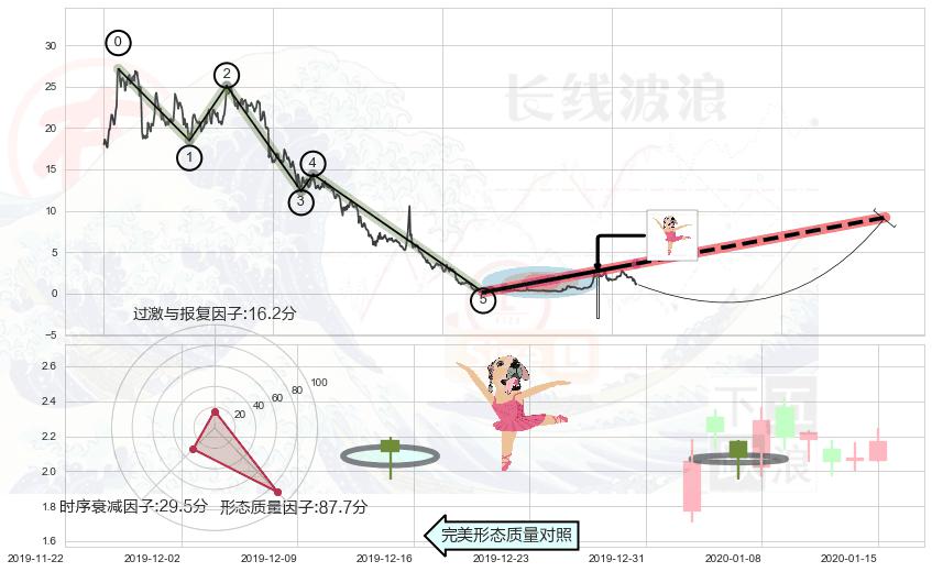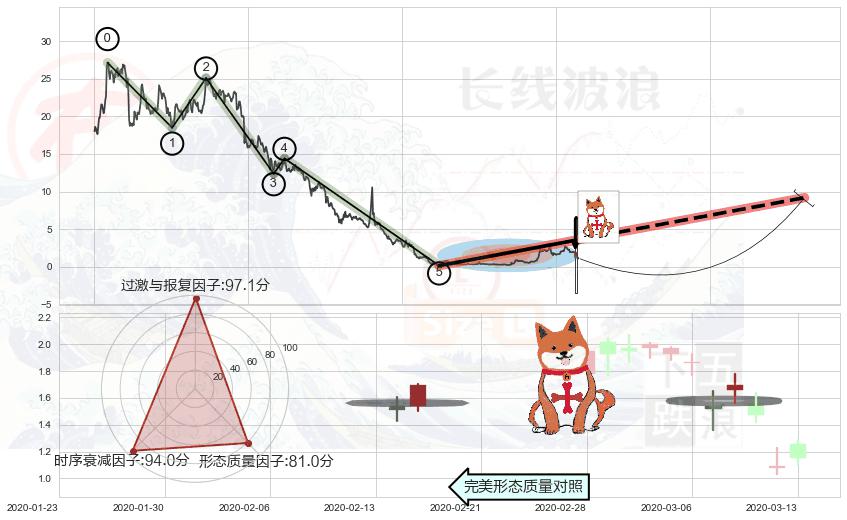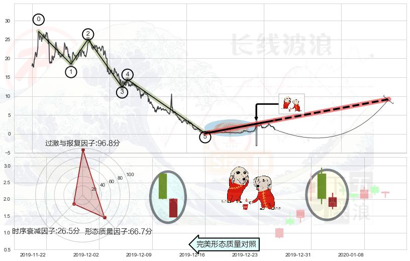 ➣ 锤头线(锤子线) + 波浪理论下跌浪:浪5反弹拐点信号叠加后【目标达成率】中等,【看多】信号叠加【存续影响中等】