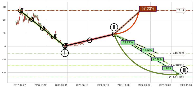 ➣ 循环浪继续向下【平均值】位置(2023-06-06, -14.4964983),匹配聚类样本比例51.72%, 可能性概率22.12%