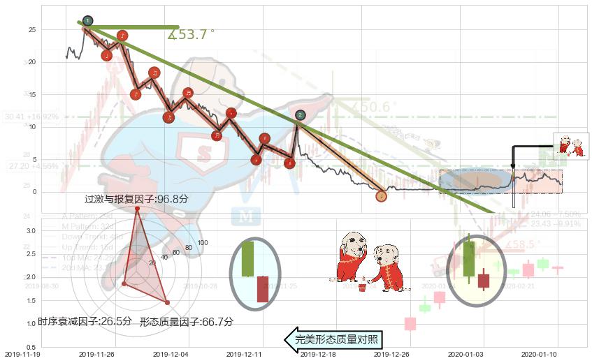 ➢ 🕰 价格走势在2020-01-10至2020-01-10期间形成锤头线(锤子线),残存影响值:2.17