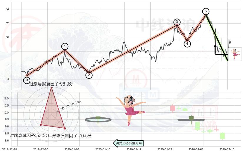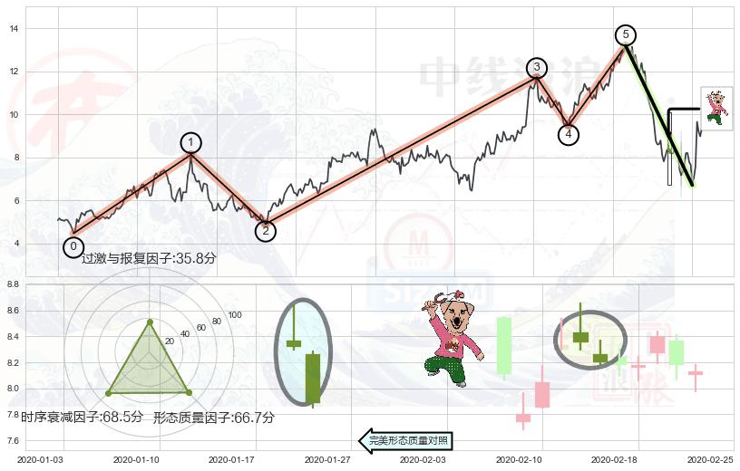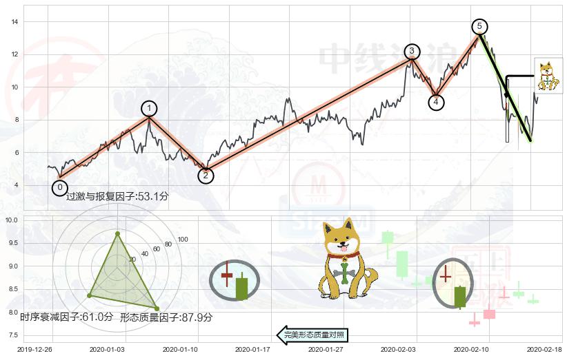 ➢ 🕰 价格走势在2020-02-10至2020-02-24期间形成两红夹一黑,残存影响值:5.30