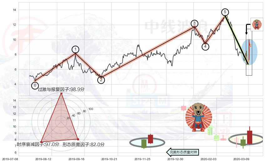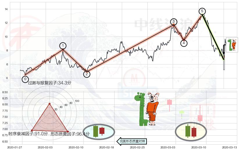 ➢ 🕰 价格走势在2020-03-05至2020-03-06期间形成中流砥柱形态,残存影响值:3.37