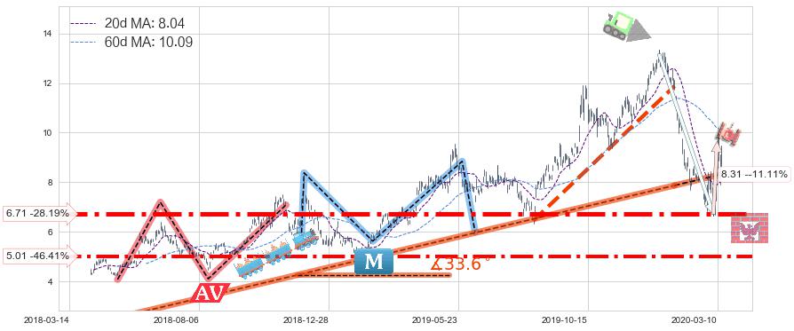 ♘ 支撑价格位6.71,可信任强度94.13%,距离最后交易2020-03-13形成的收盘价格9.35相差 -28.19%