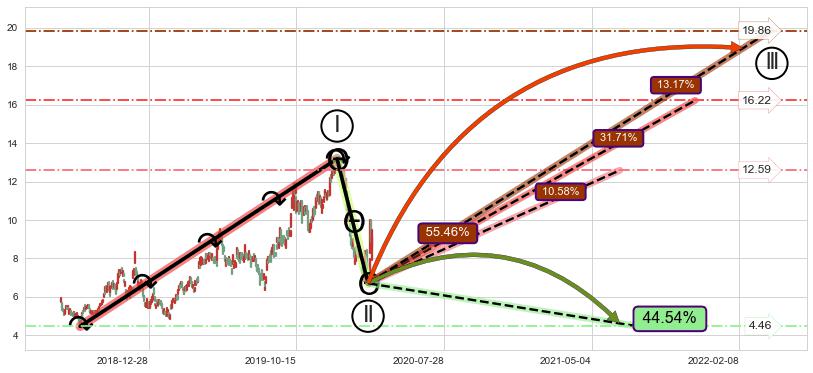 ➢ 循环浪继续向上【最低】位置(2021-06-25, 12.59),匹配聚类样本比例19.07%, 可能性概率10.58%