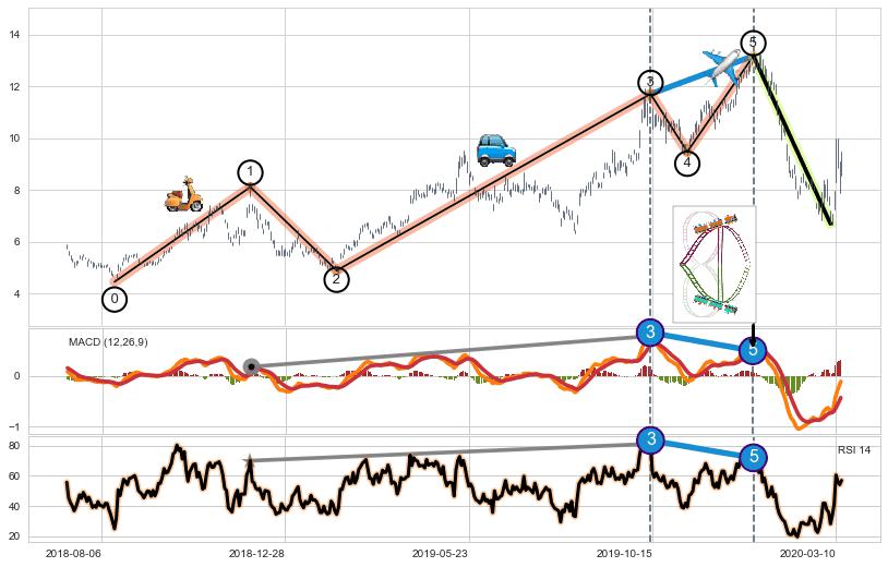 ➣ 第一, 三, 五浪上涨动能逐渐【增强变大】,趋势不断加固