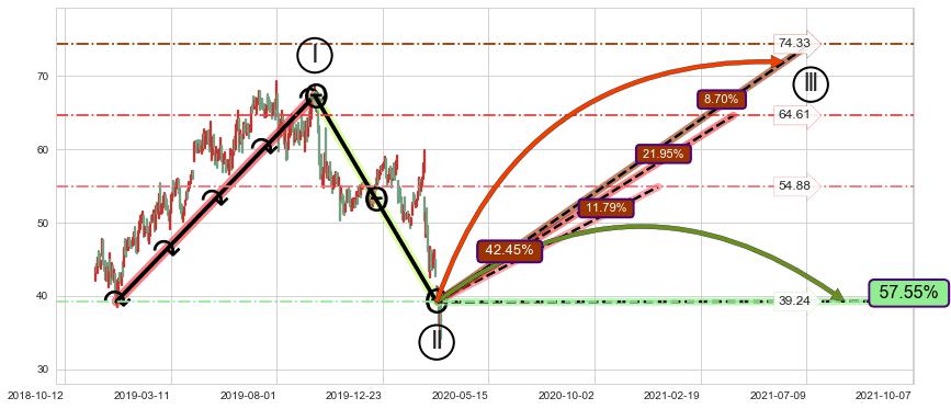 ➢ AI预测: 假定反转启动后, 第❷目标位置(2023-01-17, 48.56)