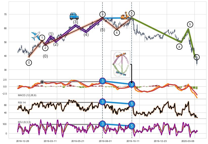 ➣ 第一, 三, 五浪上涨动能逐渐【衰弱变小】,趋势呈现不稳迹象