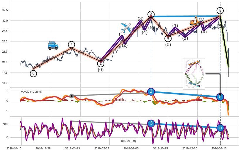 ➣ 第三,五驱动浪端点:【KDJ】走势出现【常规背离 & 反转信号】背离程度99.00%,背离夹角角度6.9˚,背离程度较大