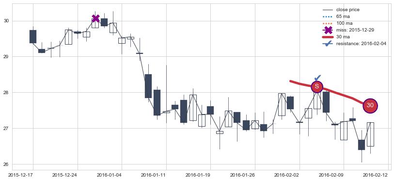 ➢ 最优均线组合共正确确认支撑阻力信号7处,正确确认率 70.00%