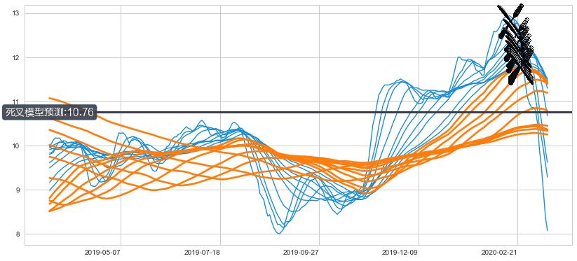 ➣ 40小时均线于(2020-02-21: 12.13)形成【死叉】基于【死叉历史模型】预测死叉后最低波谷价格: 11.14, 死叉后最低价格7.23,已经下跌超出预测最低波谷价格, 预期反弹