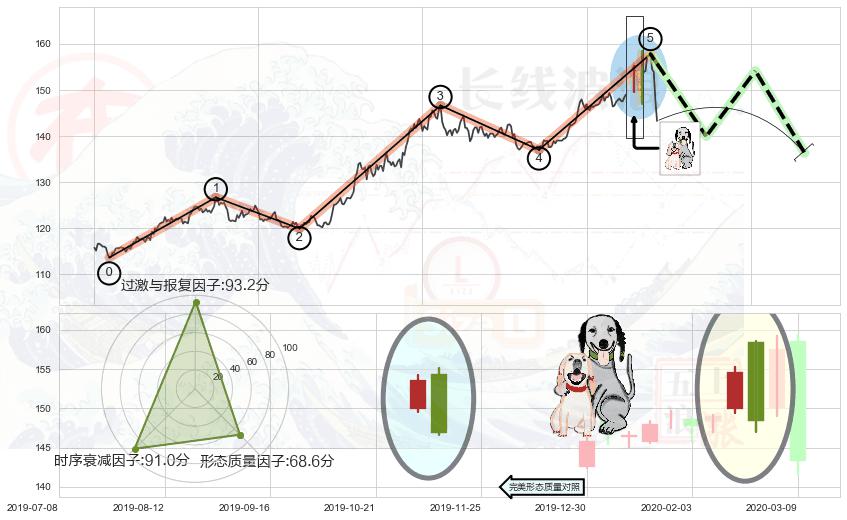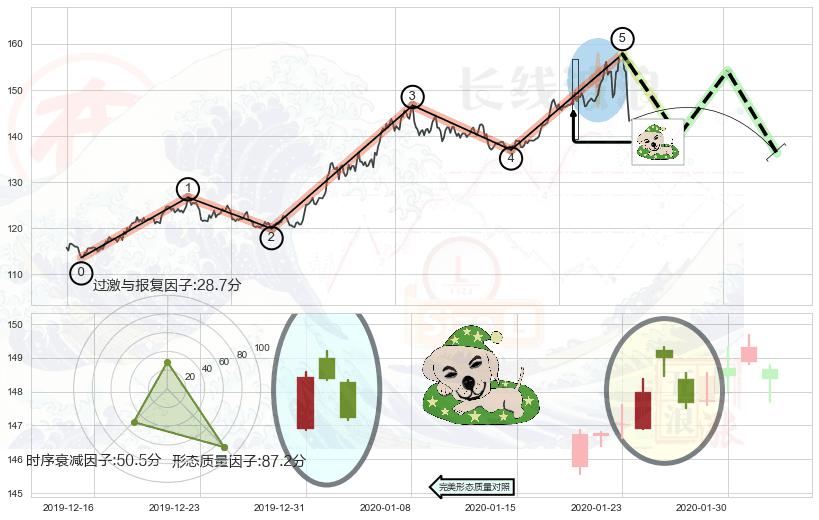 ➢ 两黑夹一红 🔜 波浪理论上涨浪:浪5回调拐点 综合量化分数:49.67 【中性】