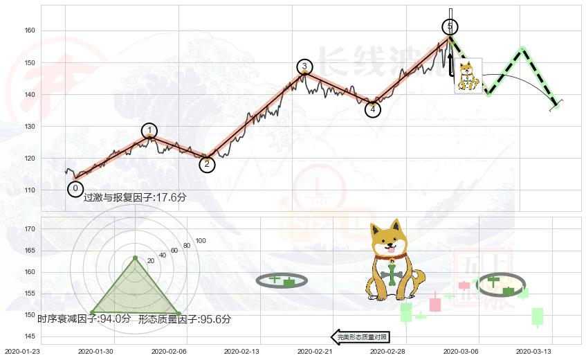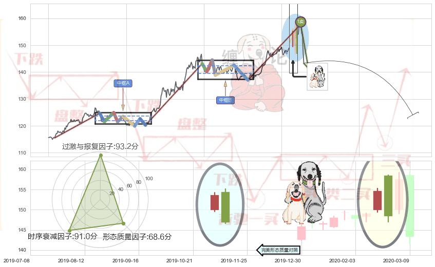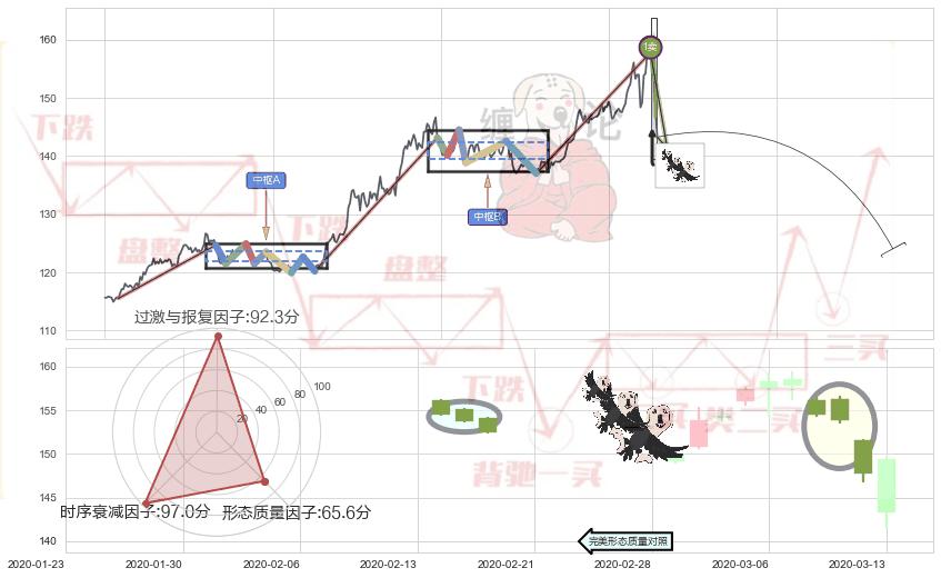 ➢ 🕰 价格走势在2020-02-24至2020-03-09期间形成两黑夹一红,残存影响值:-5.29