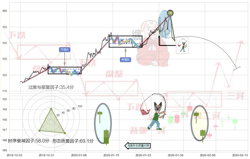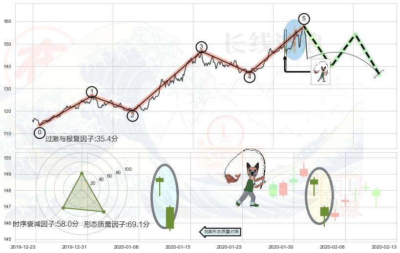 ➢ 🕰 价格走势在2020-02-03至2020-02-04期间形成吊颈线(上吊线),残存影响值:-2.57
