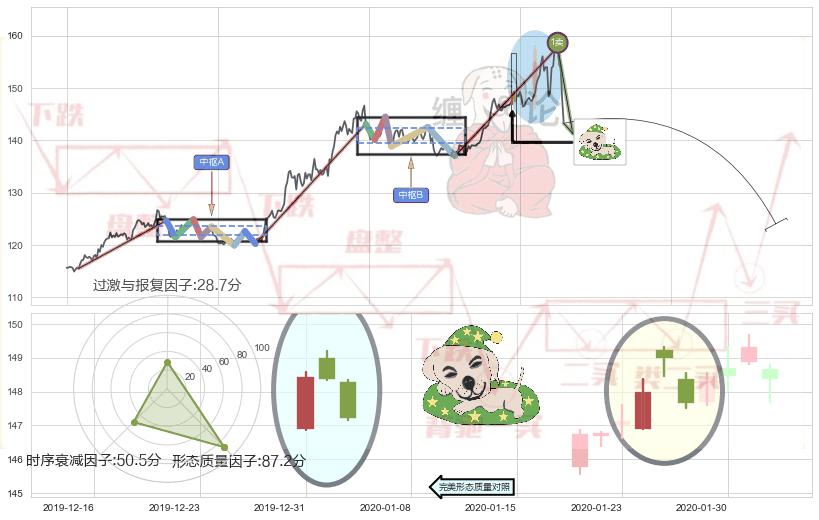 ➢ 🕰 价格走势在2020-01-24至2020-01-28期间形成黄昏之星(夜星),残存影响值:-3.38