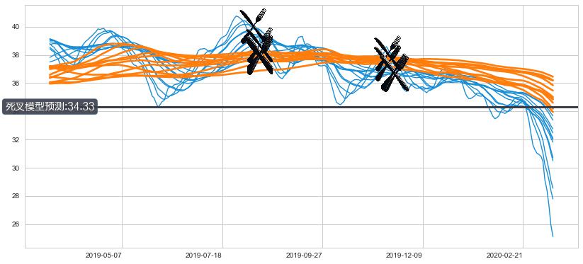 📉 多条均线基于【死叉历史模型】预测最低波谷价格的平均值: 34.33