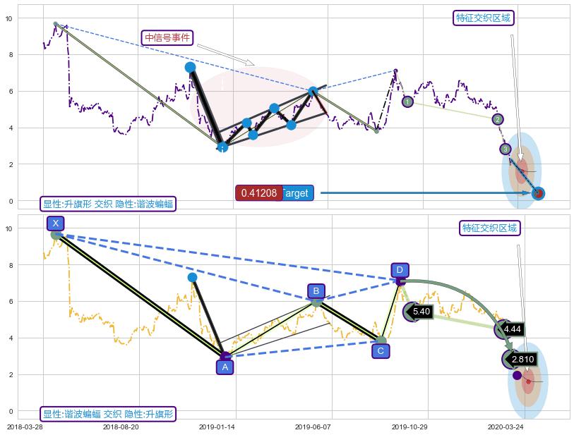 ➢ 升旗形属【中级别信号事件】谐波蝙蝠属【长级别信号事件】中长周期组合信号事件,中长事件长度比40.11%