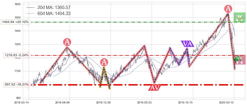 ♘ 支撑价格位997.62,可信任强度99.79%,距离最后交易2020-03-13形成的收盘价格1219.73相差 -18.21%