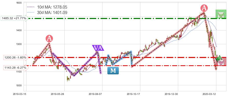 ♘ 支撑价格位1200.26,可信任强度74.47%,距离最后交易2020-03-13形成的收盘价格1219.73相差 -1.60%