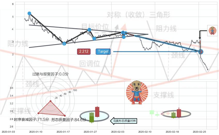 ➢ 上涨身怀六甲 🔜 下降对称三角整理target支撑拐点上涨 综合量化分数:50.24 【中性】