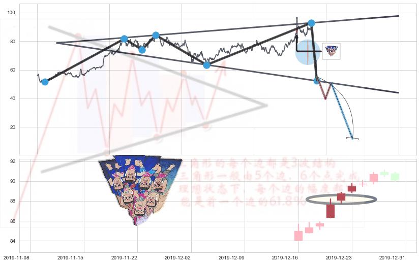 ➢ 扩散三角反转:猜想临近关键支撑位突破点 → 临近拐点下跌 → 风险信号 → 大趋势均值回复