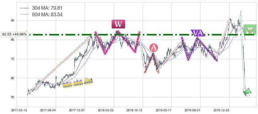 ♘ 阻力价格位82.55,可信任强度90.98%,距离最后交易2020-03-13形成的收盘价格55.05相差 +49.96%