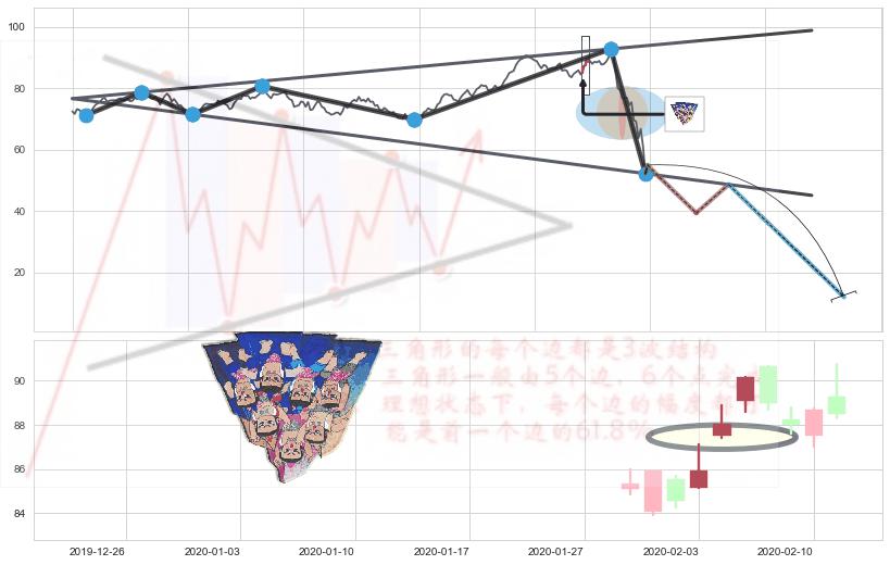 ➣ 扩散三角反转:猜想临近关键支撑位突破点 → 临近拐点下跌 → 风险信号 → 大趋势均值回复