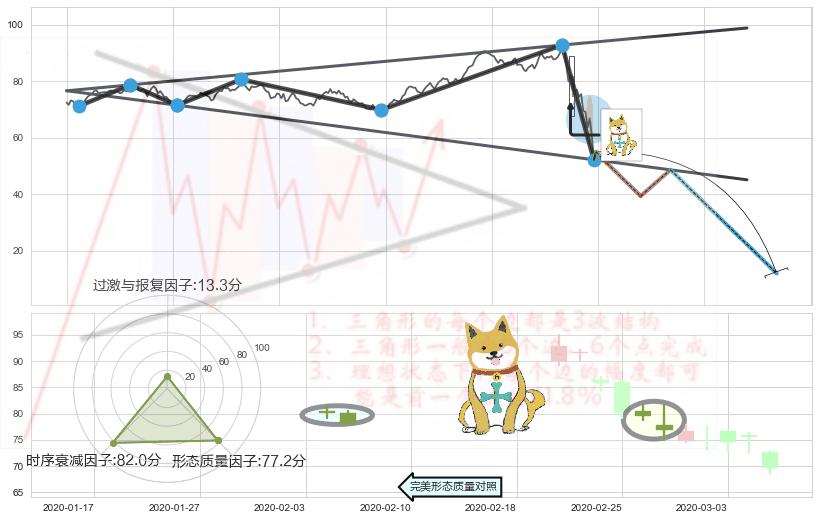 ➣ 【未确认突破,预测即将形成突破】【扩散】三角形反转起点:2019-03-27, 预测突破点:2020-03-20,形态共249交易日