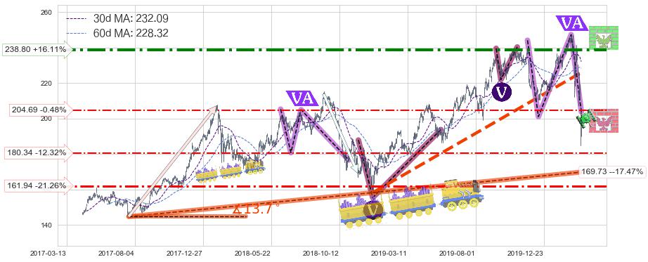 ♘ 阻力价格位238.80,可信任强度83.80%,距离最后交易2020-03-13形成的收盘价格205.67相差 +16.11%