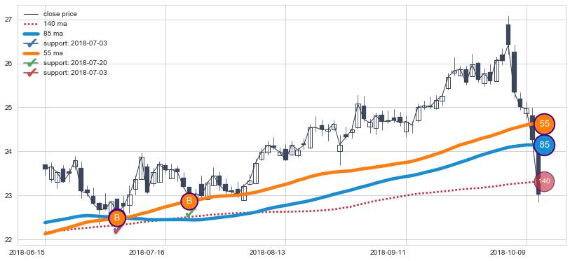 2017-07-14至2018-02-23 慢线与快线呈多头排列, 慢线与快线接触少,无缠绕