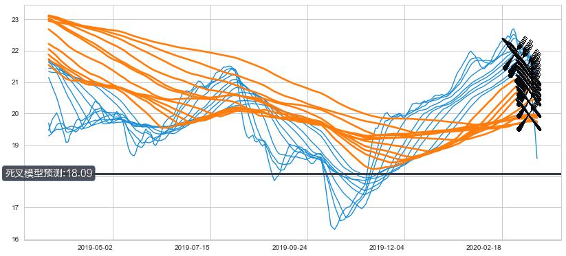 ➣ 70小时均线于(2020-03-06: 21.20)形成【死叉】基于【死叉历史模型】预测死叉后最低波谷价格: 18.56, 死叉后最低价格17.18,已经下跌超出预测最低波谷价格, 预期反弹