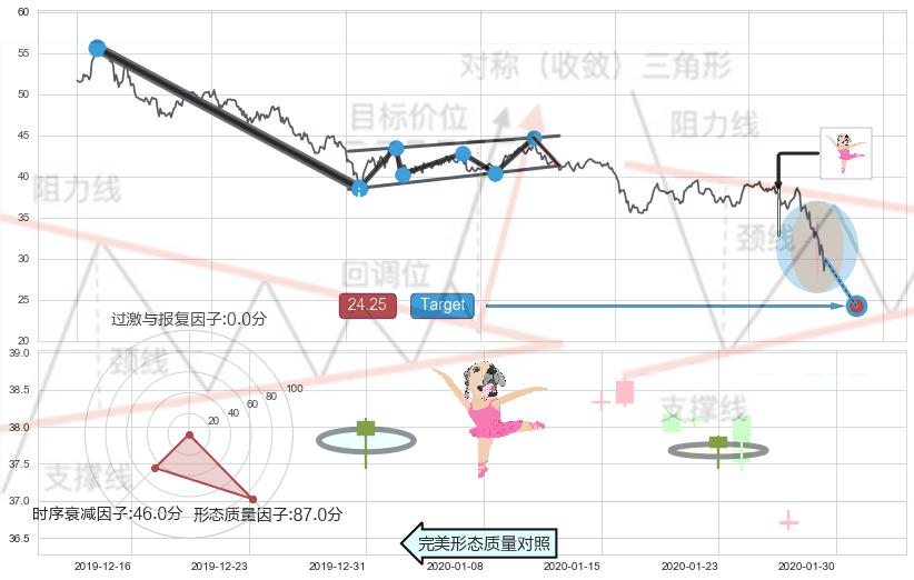 ➢ 上涨身怀六甲 🔜 下降对称三角整理target支撑拐点上涨 综合量化分数:50.36 【中性】