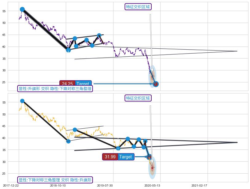 ➢ 下降对称三角整理target支撑拐点上涨 🔜 升旗形临近target支撑拐点上涨 综合量化分数:51.84 【中性】