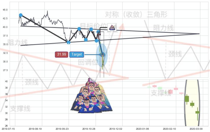 ➣ 【已达成】最小【整理】第一目标价格→(2020-03-09: 31.99 ), 后续继续【整理】下跌动力微弱,下跌较小