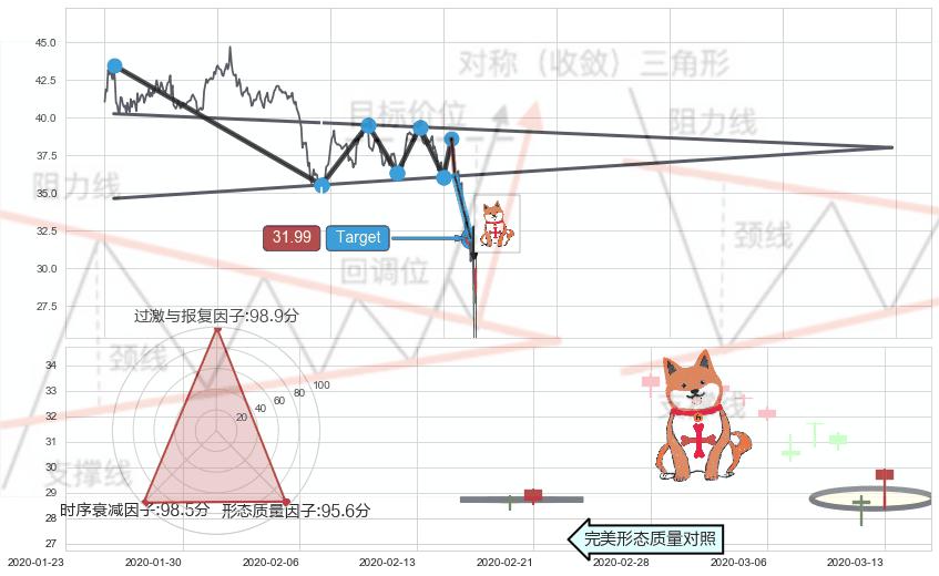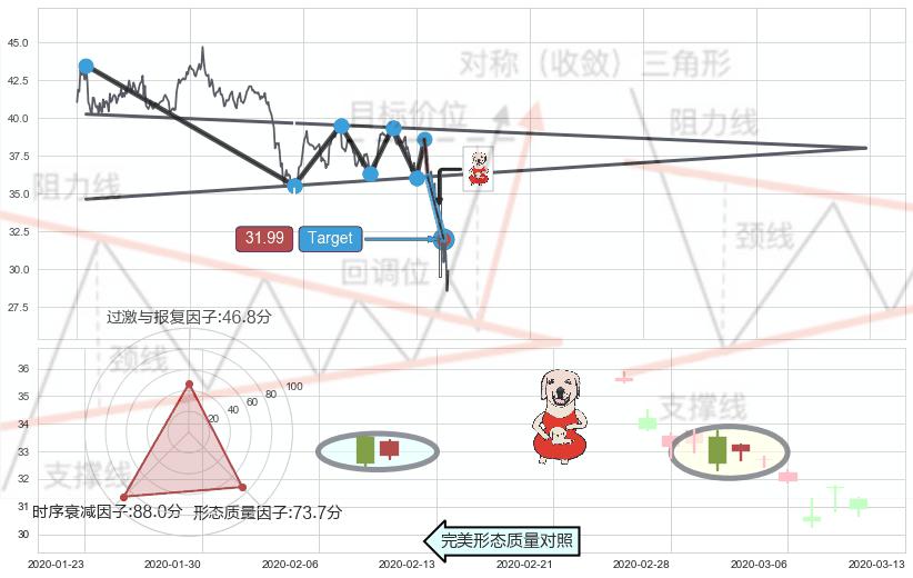 ➢ 【卖1】: 激进型 卖点→(2020-02-18: 36.11 )形成突破下降【对称】三角形整理【整理】形态