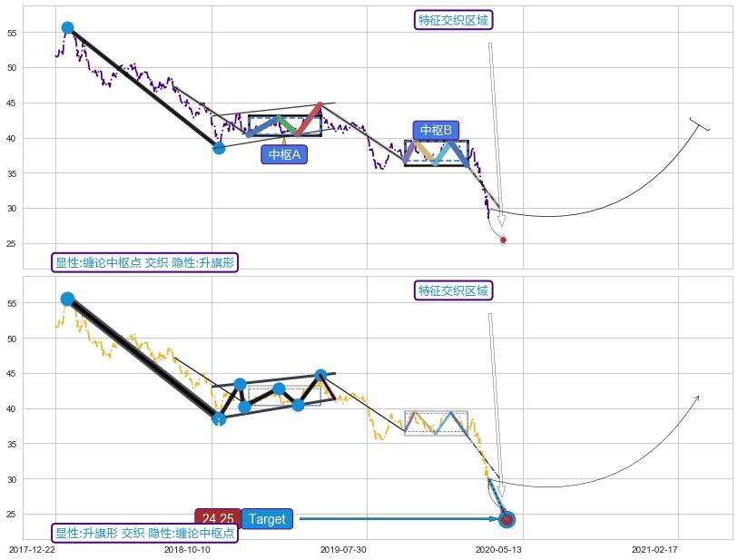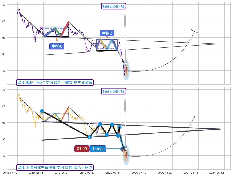 ➢ 缠论中枢点与下降对称三角整理信号事件周期长度级别相同,同周期信号事件