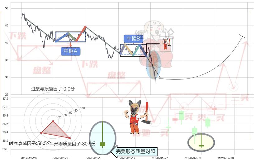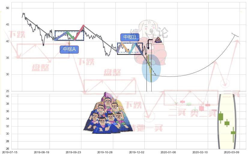 ➢ 【中枢B】:2019-10-08-2020-02-03,中枢由5笔构成,共81交易日, ZG=39.37, ZD=36.68
