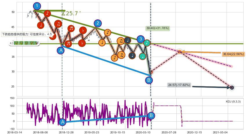 ♘ 在最后的下跌阶段2018-05-22至2020-03-13,存在 持续未破位的阻力位 ,阻力价格39.40,可信任强度86.61%,其距离最后价格29.90相差 +31.78%