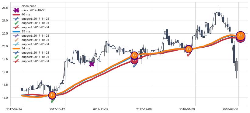 ➢ 最优均线组合共正确确认支撑阻力信号4处,正确确认率 50.00%