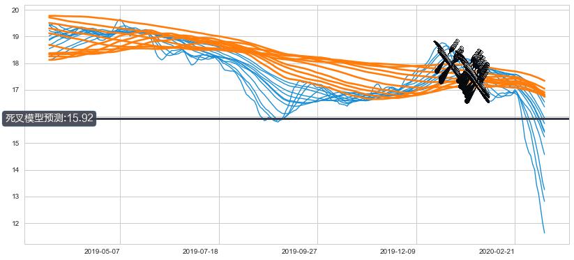 ➣ 120小时均线于(2020-01-23: 17.11)形成【死叉】基于【死叉历史模型】预测死叉后最低波谷价格: 15.44, 死叉后最低价格10.51,已经下跌超出预测最低波谷价格, 预期反弹