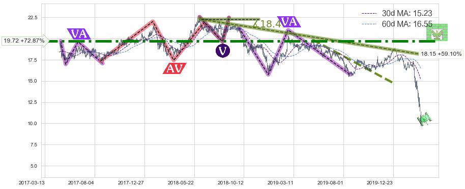 ♘ 阻力价格位19.72,可信任强度90.33%,距离最后交易2020-03-13形成的收盘价格11.41相差 +72.87%