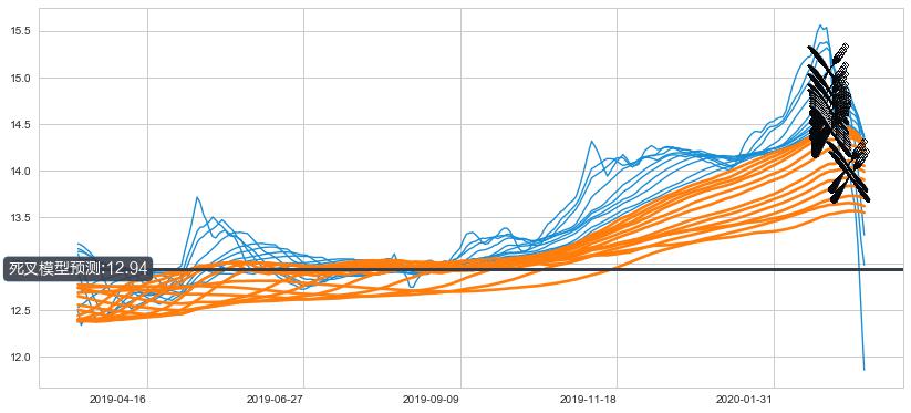 ➣ 75小时均线于(2020-02-27: 14.42)形成【死叉】基于【死叉历史模型】预测死叉后最低波谷价格: 12.96, 死叉后最低价格10.57,已经下跌超出预测最低波谷价格, 预期反弹