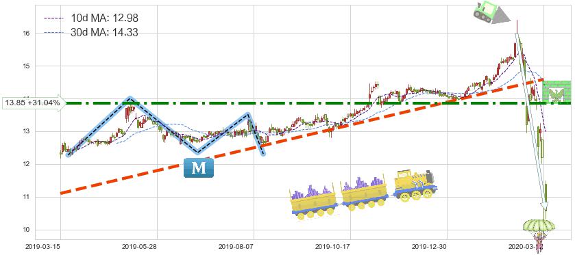♘ 阻力价格位13.85,可信任强度80.11%,距离最后交易2020-03-13形成的收盘价格10.57相差 +31.04%